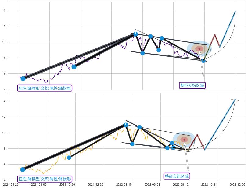 ➢ 降旗形与降楔型信号事件周期长度级别相同,同周期信号事件