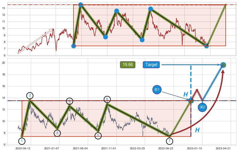 ➣ 最小中继整理涨幅→𝐇: 6.84 (𝐇旗杆的长度:旗杆起点→顶点)