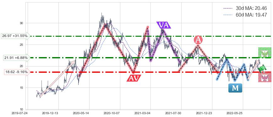 ♘ 阻力价格位26.97,可信任强度62.44%,距离最后交易2022-08-12形成的收盘价格20.50相差 +31.55%