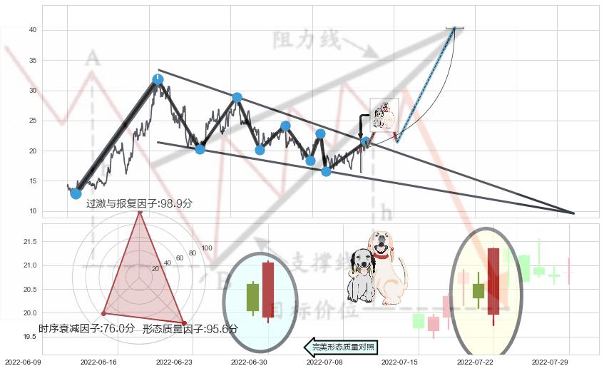 ➢ 🕰 价格走势在2022-07-14至2022-07-14期间形成锤头线(锤子线),残存影响值:4.98