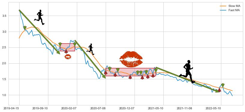 2021-03-26至2022-04-27 慢线与快线呈空头排列, 慢线与快线接触少,无缠绕