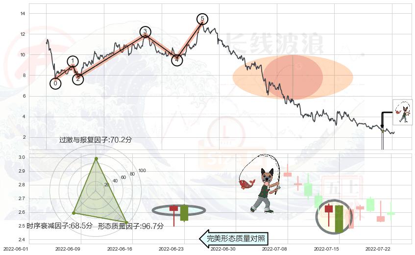 ➢ 🕰 价格走势在2022-07-14至2022-07-15期间形成吊颈线(上吊线),残存影响值:-3.96