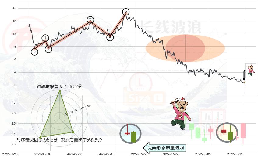 从2021-04-08至2022-08-12,共包含334个交易日,阶段股价下跌-139.65%,阶段股价变动位移路程比: 1 : 6,下跌趋势角度: 45.2