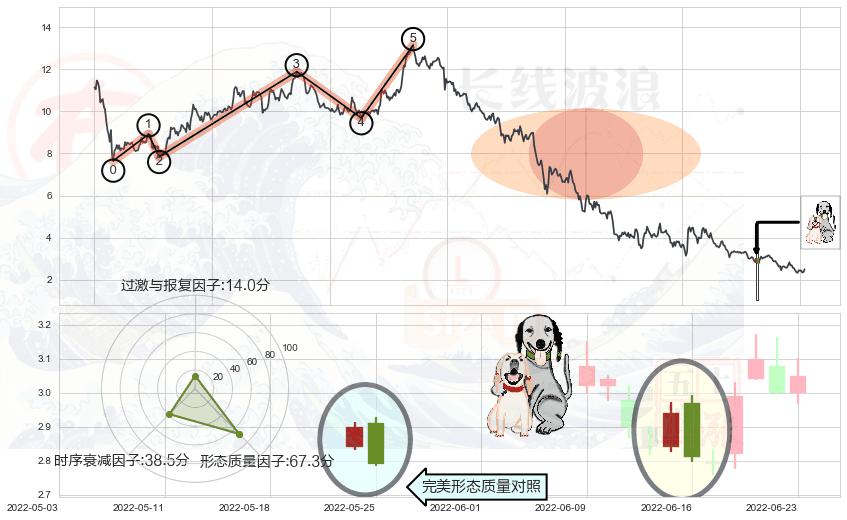 ➢ 🕰 价格走势在2022-06-01至2022-06-06期间形成三只乌鸦,残存影响值:-3.91