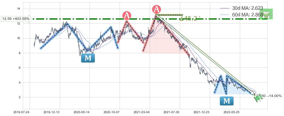 ♘ 阻力价格位12.59,可信任强度77.78%,距离最后交易2022-08-12形成的收盘价格2.500相差 +403.55%