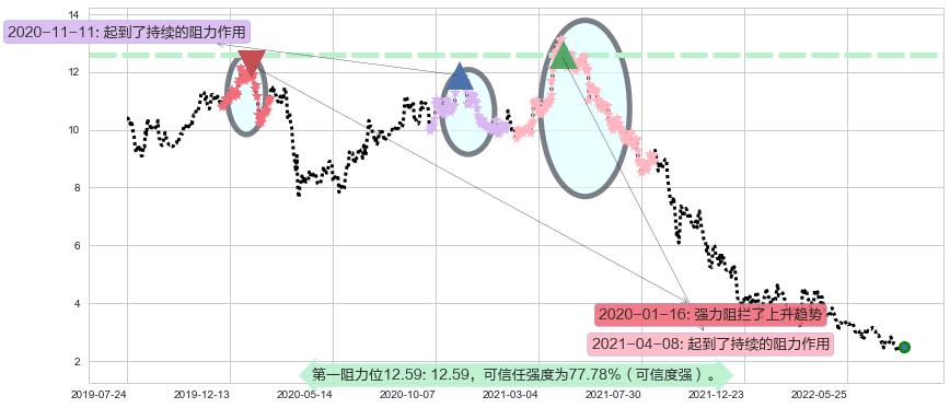 ♞ 第一阻力位12.59价格为12.59,其通过量化计算出的可信任强度为77.78%(可信度强)。