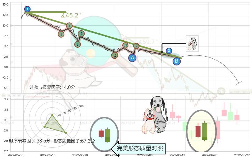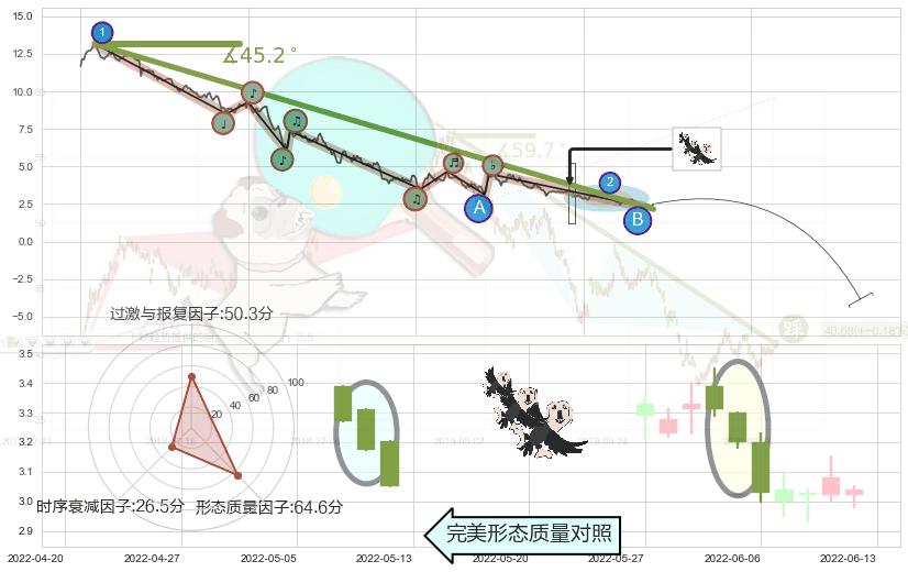 ➢ 🕰 价格走势在2022-06-23至2022-06-24期间形成顶部尽头线(下山虎),残存影响值:-1.66