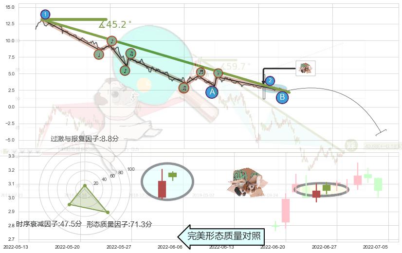 ➢ 🕰 价格走势在2022-07-14至2022-07-15期间形成吊颈线(上吊线),残存影响值:-3.96