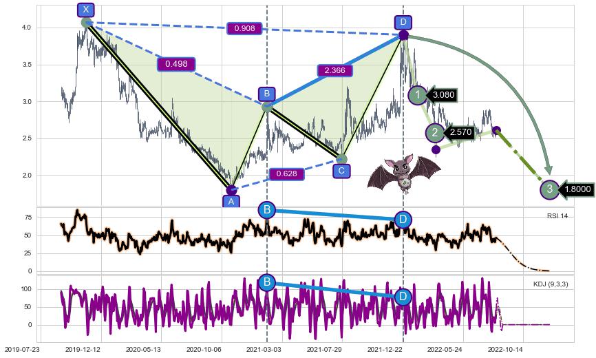 ➣ 已完成【蝙蝠】形态起点X: 2019-11-07, 终点D: 2021-12-23, 共527交易日