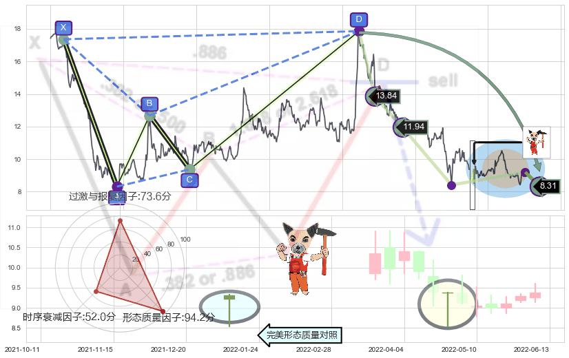 ♘ 阻力价格位13.78,可信任强度93.13%,距离最后交易2022-08-12形成的收盘价格9.21相差 +49.62%
