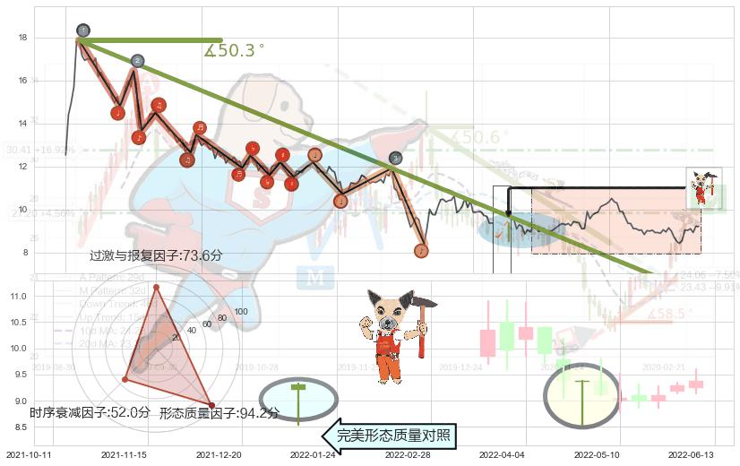从2021-09-07至2022-01-11,共包含86个交易日,阶段股价下跌-36.62%,阶段股价变动位移路程比: 1 : 4,下跌趋势角度: 61.2