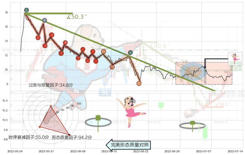 从2021-09-07至2022-07-05,共包含201个交易日,阶段股价下跌-51.46%,阶段股价变动位移路程比: 1 : 7,下跌趋势角度: 50.3