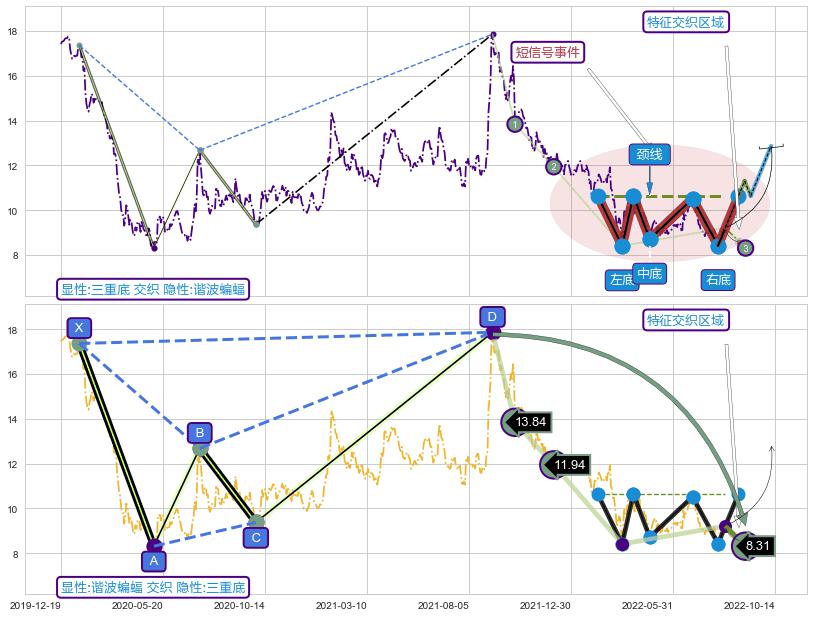 ➢ 三重底属【短级别信号事件】谐波蝙蝠属【长级别信号事件】长短周期组合信号事件, 短长事件长度比35.22%