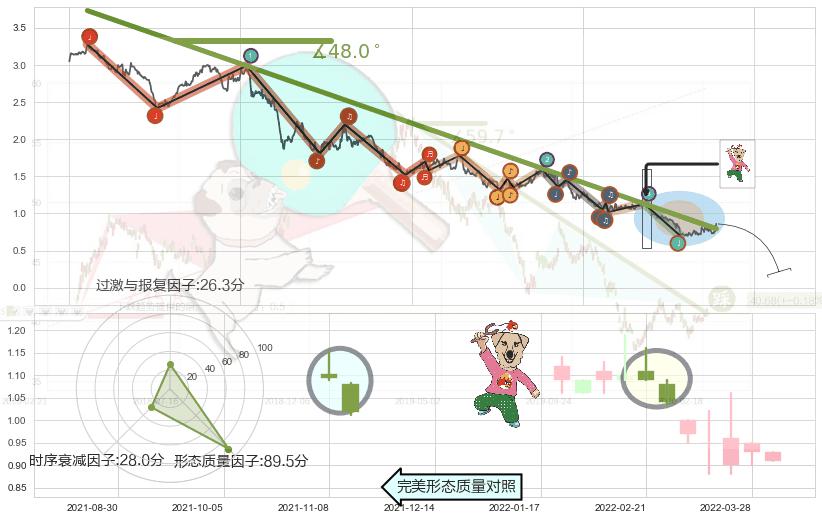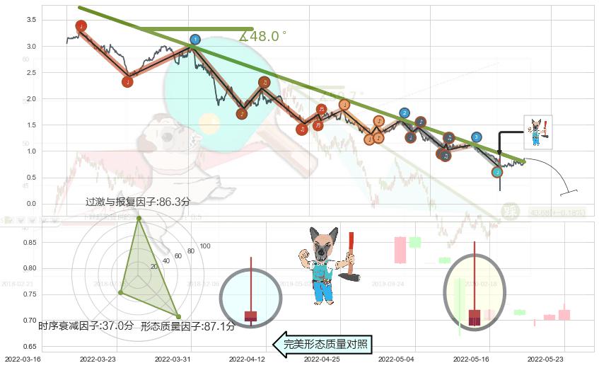 从2019-04-12至2022-05-18,共包含698个交易日,阶段股价下跌-133.49%,阶段股价变动位移路程比: 1 : 8,下跌趋势角度: 48.0