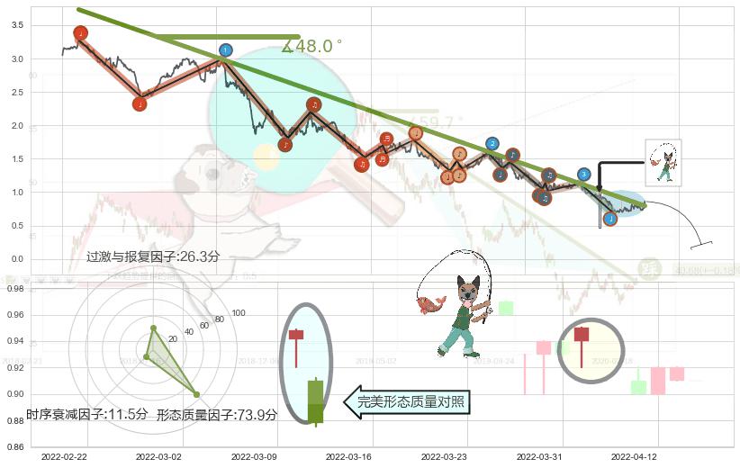 ➢ 🕰 价格走势在2022-04-01至2022-04-04期间形成吊颈线(上吊线),残存影响值:-1.44
