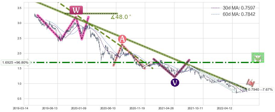 ➣ D点拟合预测价格0.9426,距离最后交易收盘价格0.8600相差 +9.61%