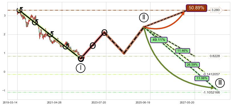 ➣ 循环浪继续向下【平均值】位置(2027-12-08, -0.1412057),匹配聚类样本比例54.15%, 可能性概率26.59%