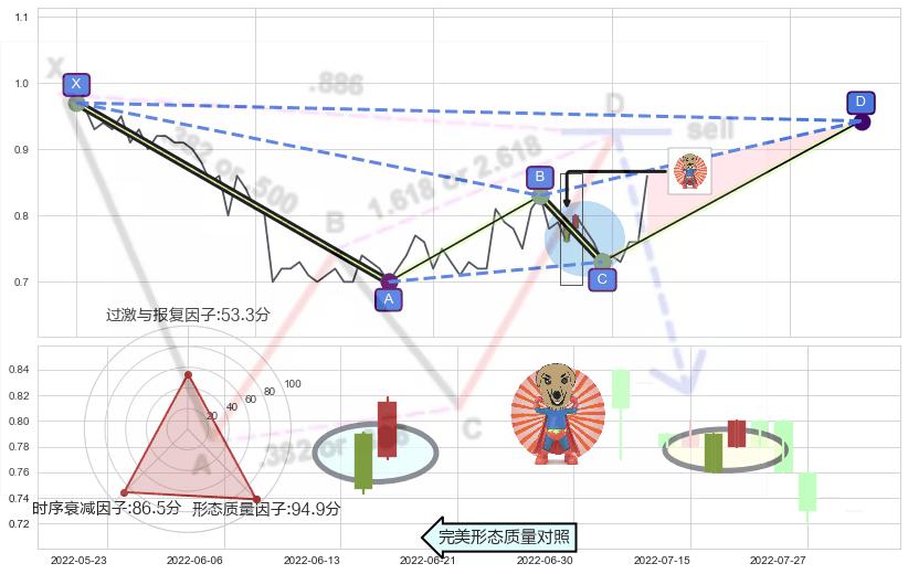 ➣ 未完成【蝙蝠】形态起点X: 2022-03-24, 已到达C点: 2022-07-27, 预测最终D点: 2022-09-14, 共89交易日