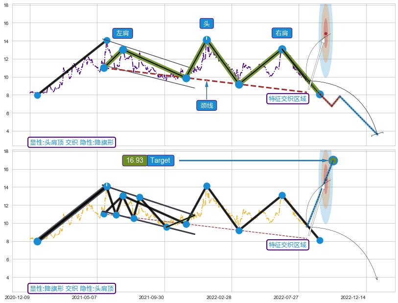 ➣ 【未确认突破,预测即将形成突破】头肩顶起点:2021-05-13, 预测突破点:2022-09-08,形态共328交易日