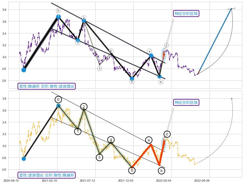 ➢ 降旗形与波浪理论信号事件周期长度级别相同,同周期信号事件