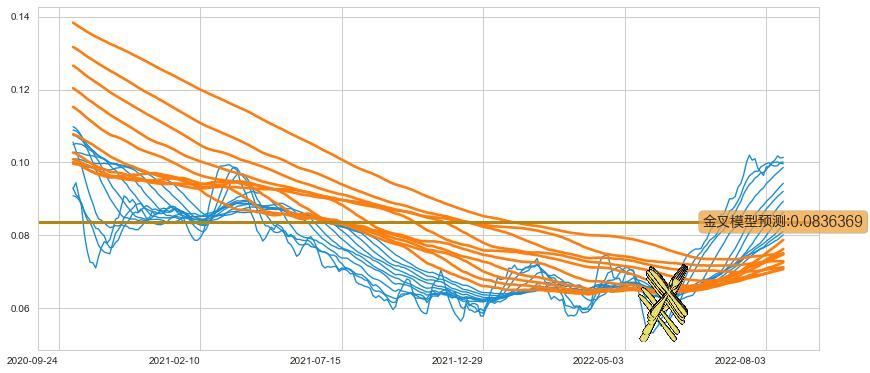 📈 多条均线基于【金叉历史模型】预测最高波峰价格的平均值: 0.0836369