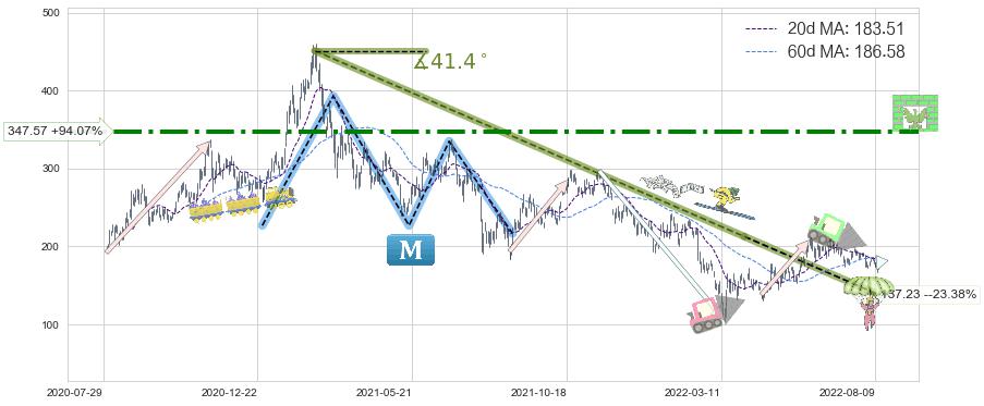 ♘ 阻力价格位347.57,可信任强度72.33%,距离最后交易2022-08-12形成的收盘价格179.10相差 +94.07%