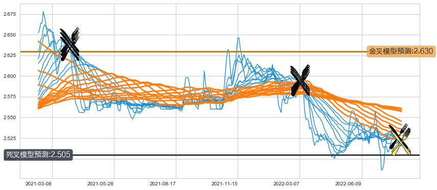 ➣ 60小时均线于(2022-03-07: 2.597)形成【死叉】基于【死叉历史模型】预测死叉后最低波谷价格: 2.557, 死叉后最低价格2.450,已经下跌超出预测最低波谷价格, 预期反弹