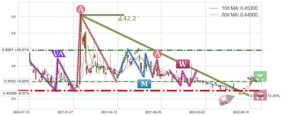 ➣ 收盘价(2022-07-27: 0.45500 )→回踩→第二根k线高点(2022-07-21: 0.45000 )
