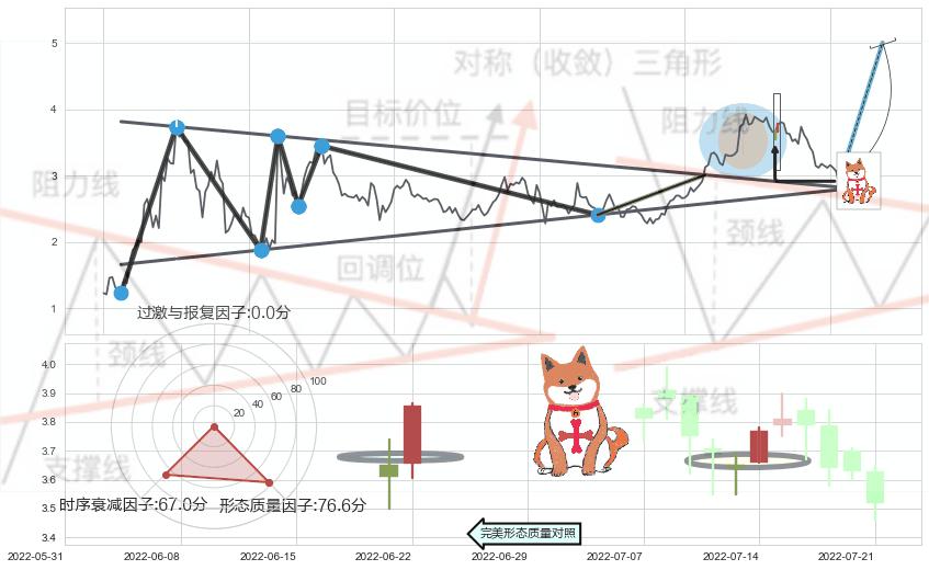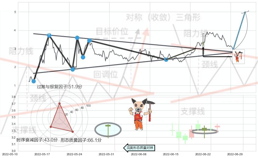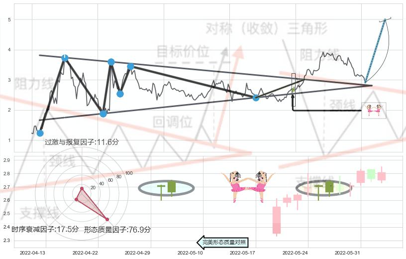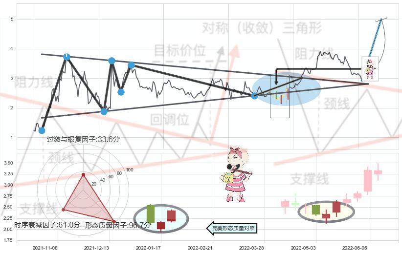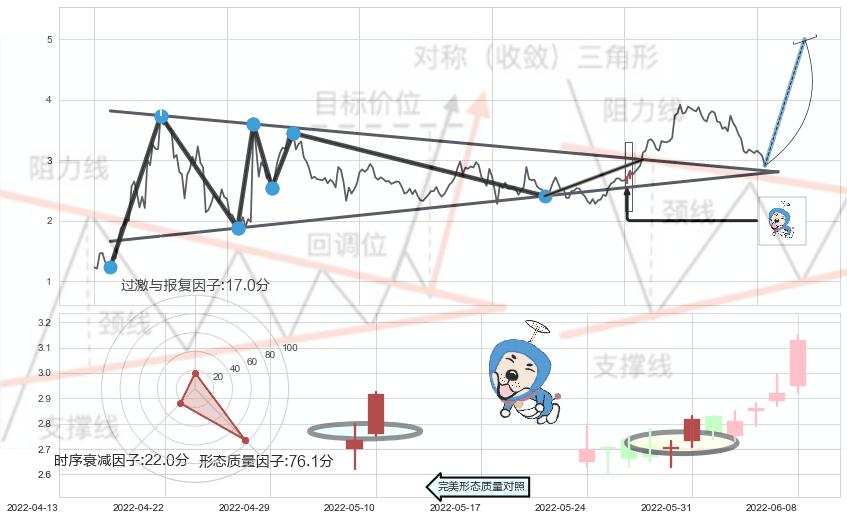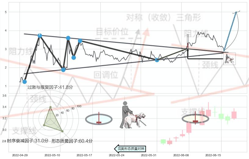 ➢ 【买1】: 激进型 买点 →(2022-06-08: 3.012 )形成突破上升【对称】三角形整理【整理】形态