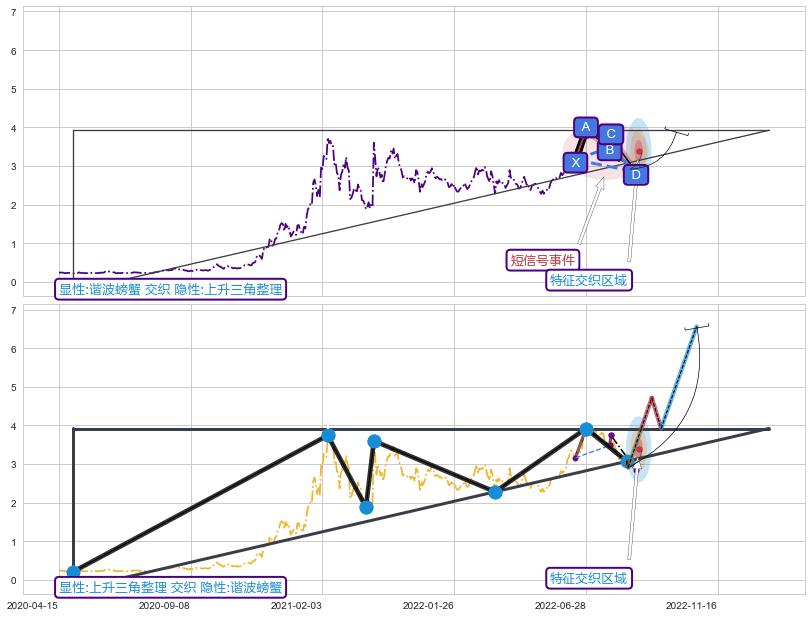 ➢ 谐波螃蟹属【短级别信号事件】上升三角整理属【长级别信号事件】长短周期组合信号事件, 短长事件长度比9.72%