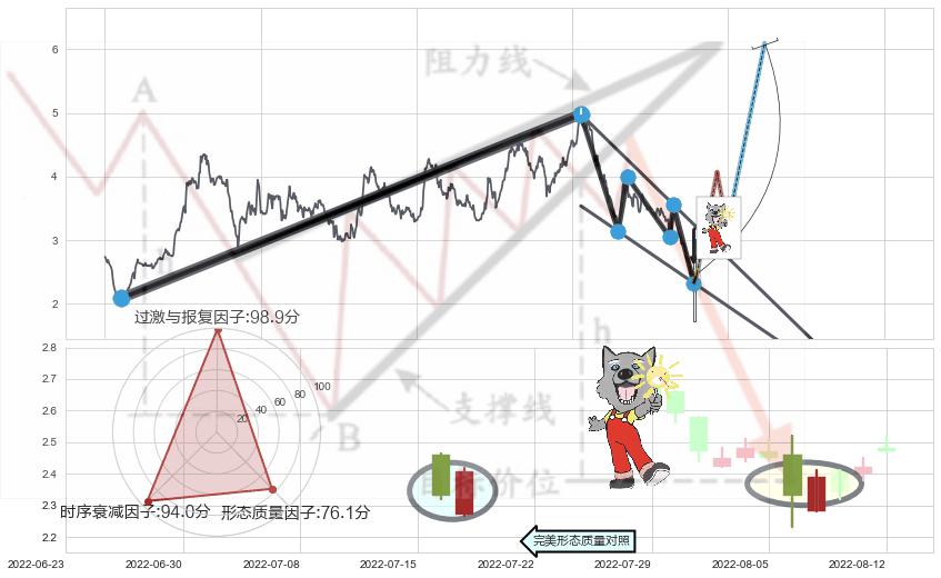 ➢ 【卖1】: 激进型 卖点→(2022-08-01: 2.602 )形成突破头肩顶【反转】形态