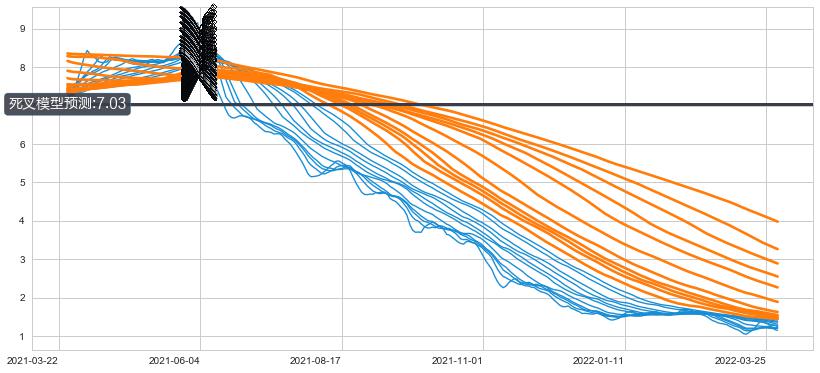 📉 多条均线基于【死叉历史模型】预测最低波谷价格的平均值: 7.03