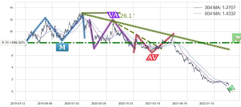 ♘ 阻力价格位8.10,可信任强度84.51%,距离最后交易2022-03-31形成的收盘价格1.1800相差 +586.32%