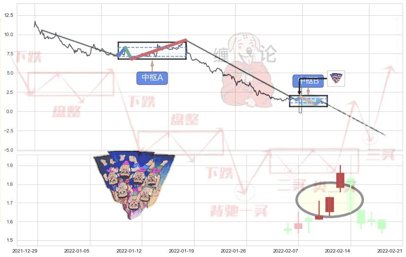 ➣ 【中枢B】:2022-01-28-2022-03-23,中枢由4笔构成,共36交易日, ZG=1.4800, ZD=1.4300