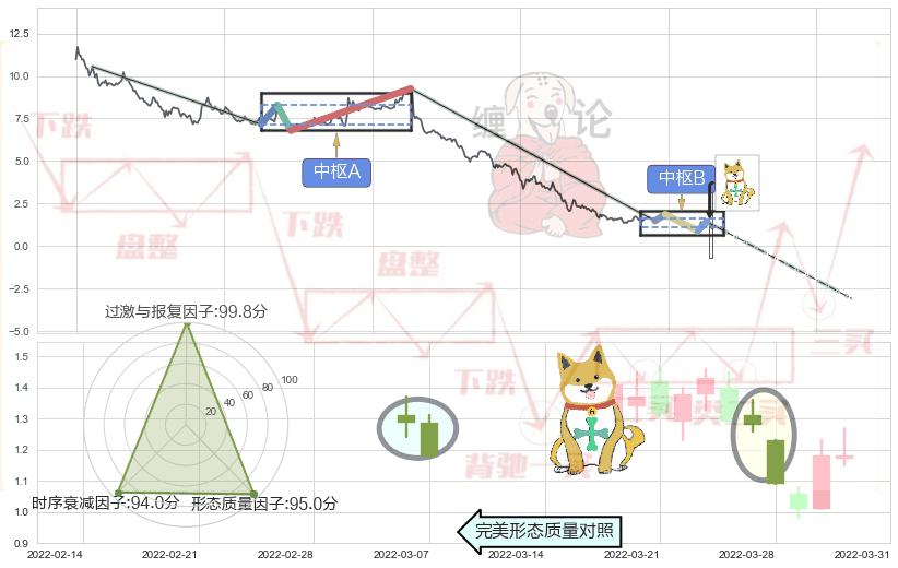 ➢ 下降三部曲(降势三鹤) 🔜 缠论中枢点破位中枢B支撑下拉 综合量化分数:41.95 【偏空】