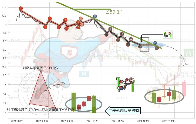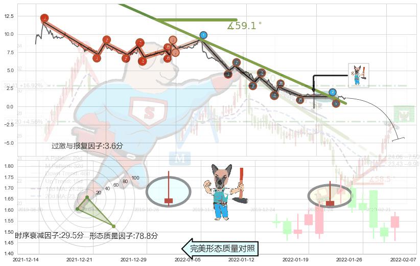 ➢ 🕰 价格走势在2021-12-28至2022-01-24期间形成下降三部曲(降势三鹤),残存影响值:-7.47