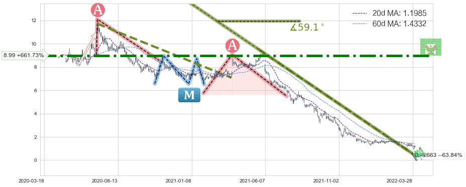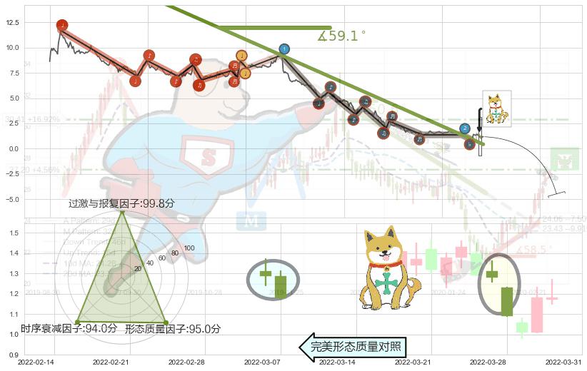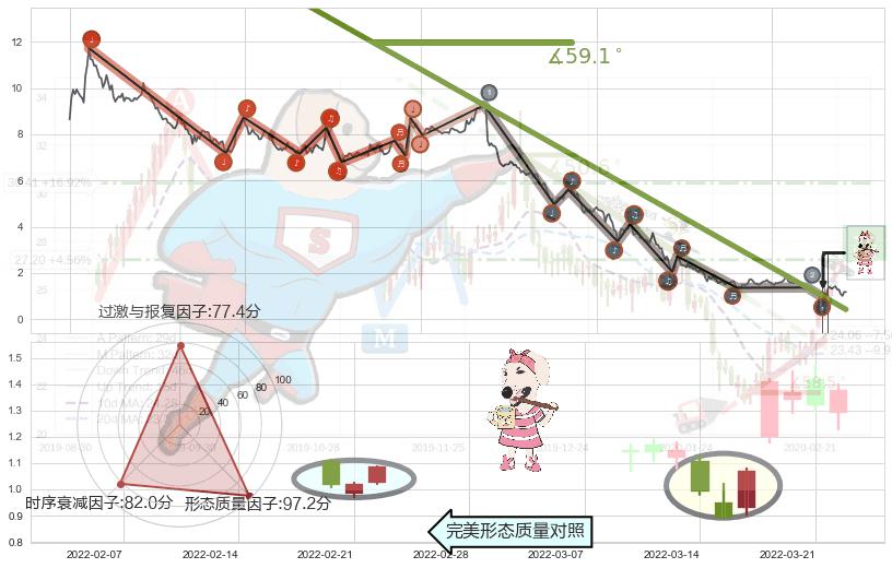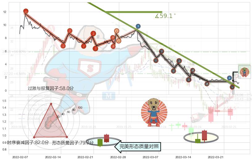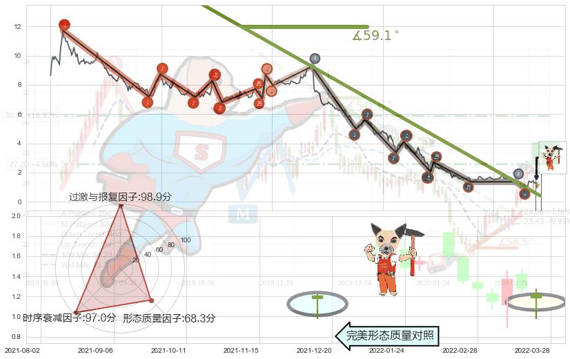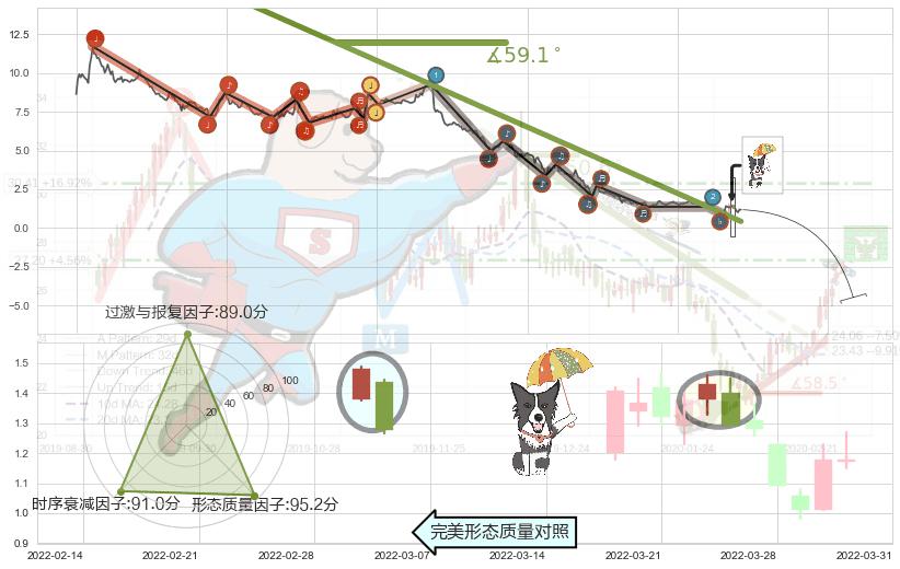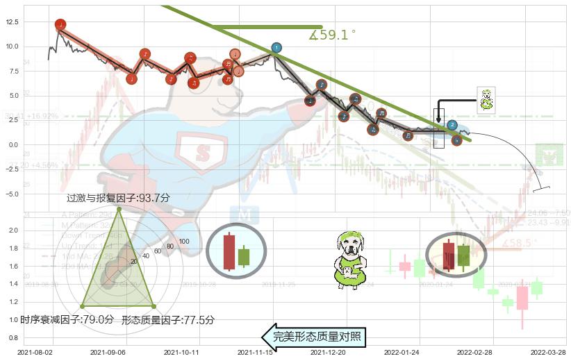 从2020-07-06至2022-03-31,共包含432个交易日,阶段股价下跌-188.63%,阶段股价变动位移路程比: 1 : 6,下跌趋势角度: 59.1