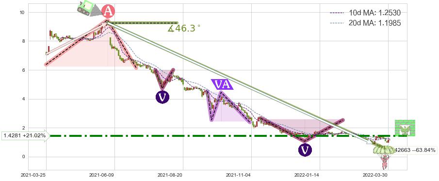 ♘ 阻力价格位1.4281,可信任强度79.04%,距离最后交易2022-03-31形成的收盘价格1.1800相差 +21.02%