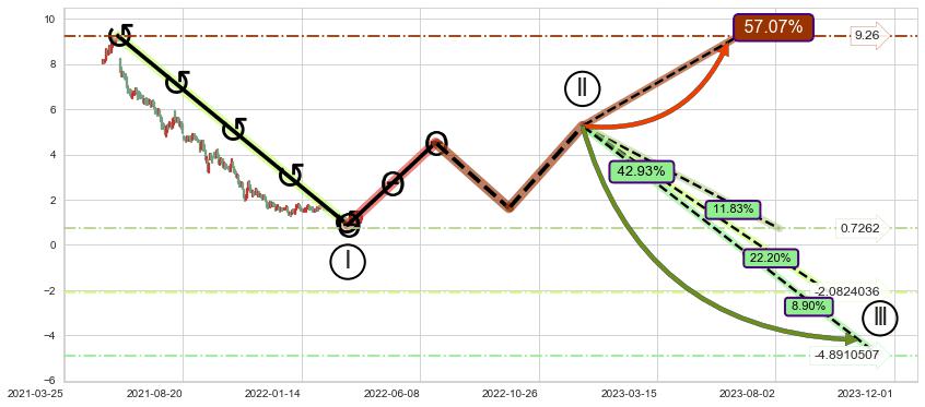 ➢ AI预测: 假定反转启动后, 第❷目标位置(2022-06-01, 1.4612)