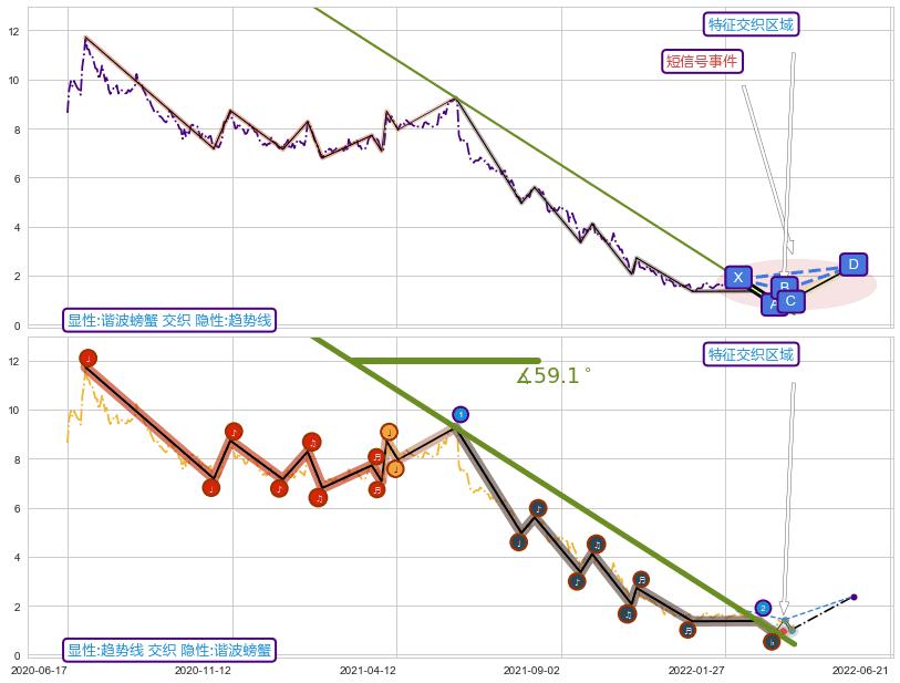 ➢ 谐波螃蟹属【短级别信号事件】趋势线属【长级别信号事件】长短周期组合信号事件, 短长事件长度比8.33%