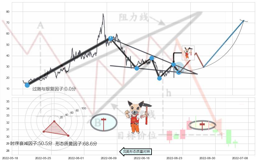 ➢ 🕰 价格走势在2022-06-28至2022-06-28期间形成锤头线(锤子线),残存影响值:2.31