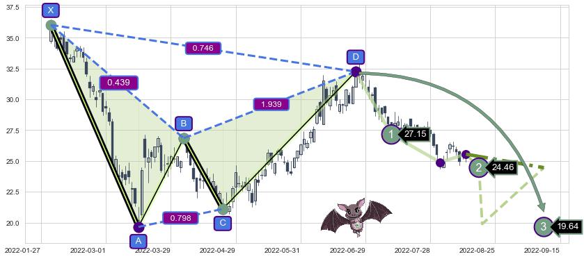 ➣ 已完成【蝙蝠】形态起点X: 2022-02-04, 终点D: 2022-06-24, 共95交易日