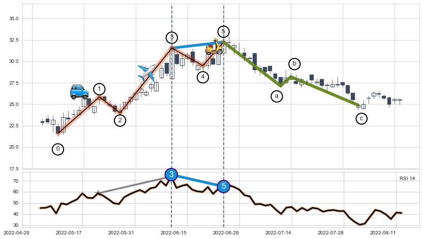 ➣ ['回调abc识别为: 【锯齿型调整浪】 ', '锯齿型:子浪535结构 ⓑ点振幅较小,ⓒ点继续发力远超ⓐ点结束位置']