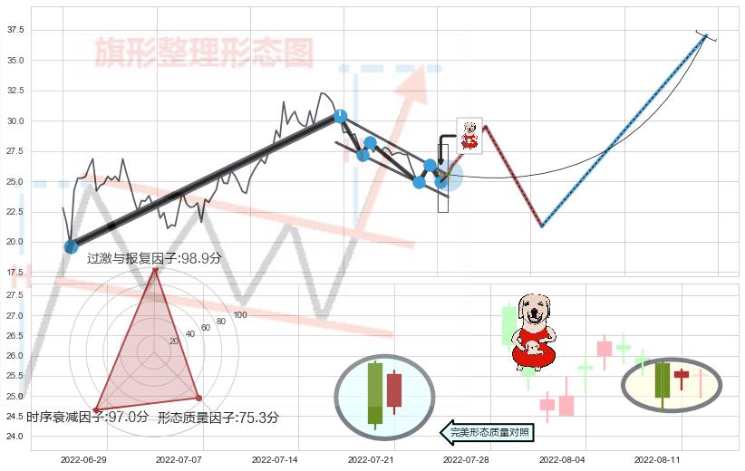 ➣ 【未确认突破,预测即将形成突破】降⚑旗形起点:2022-03-15, 预测突破点:2022-08-15,形态共103交易日