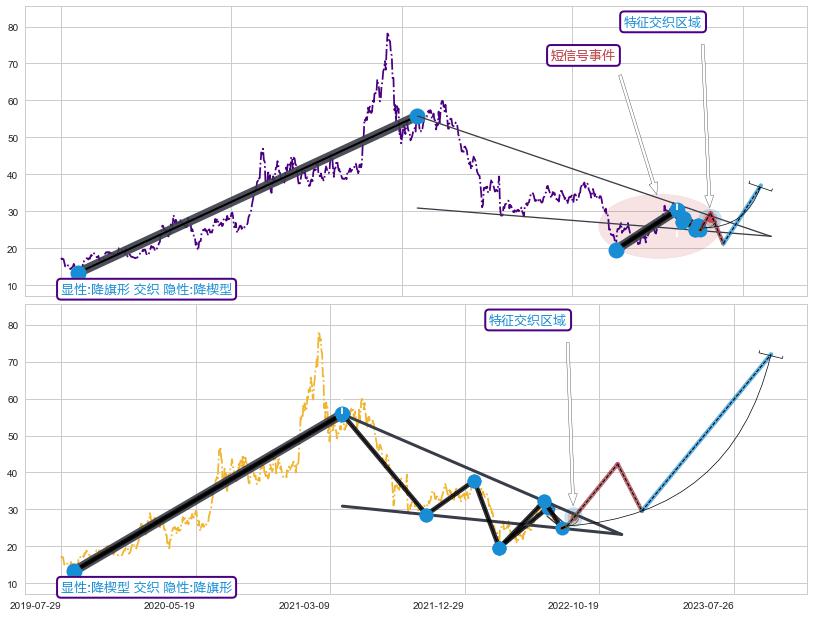 ➢ 降旗形属【短级别信号事件】降楔型属【长级别信号事件】长短周期组合信号事件, 短长事件长度比13.92%
