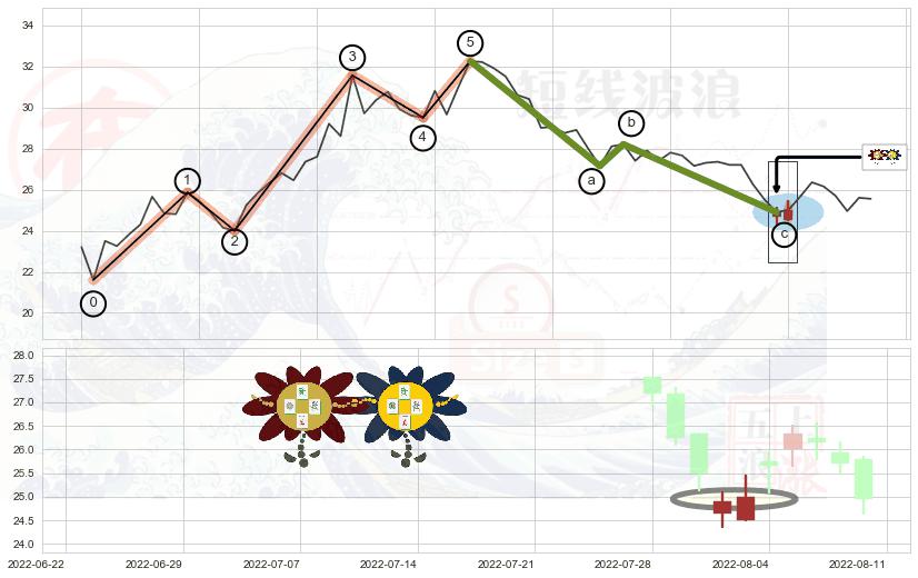 从2022-06-24至2022-08-12,共包含35个交易日,阶段股价下跌-22.56%,阶段股价变动位移路程比: 1 : 2