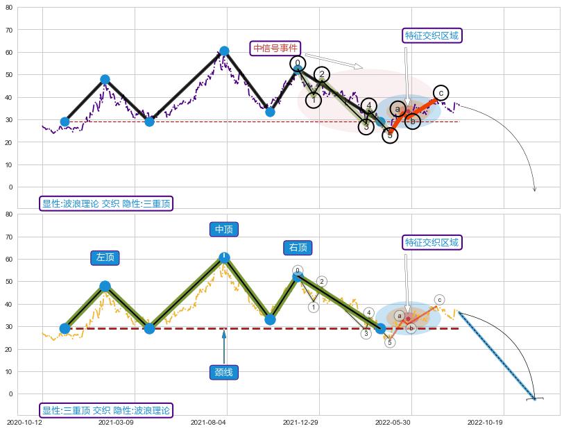 ➢ 波浪理论与降楔型信号事件周期长度级别相同,同周期信号事件