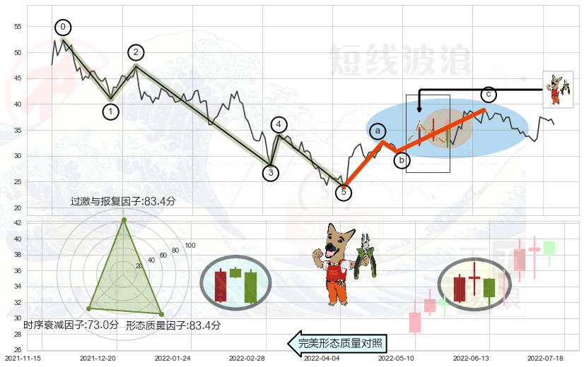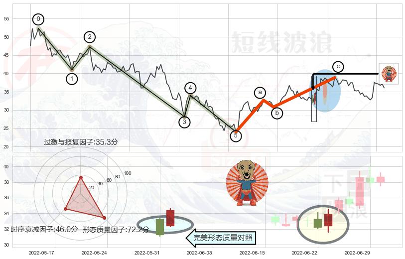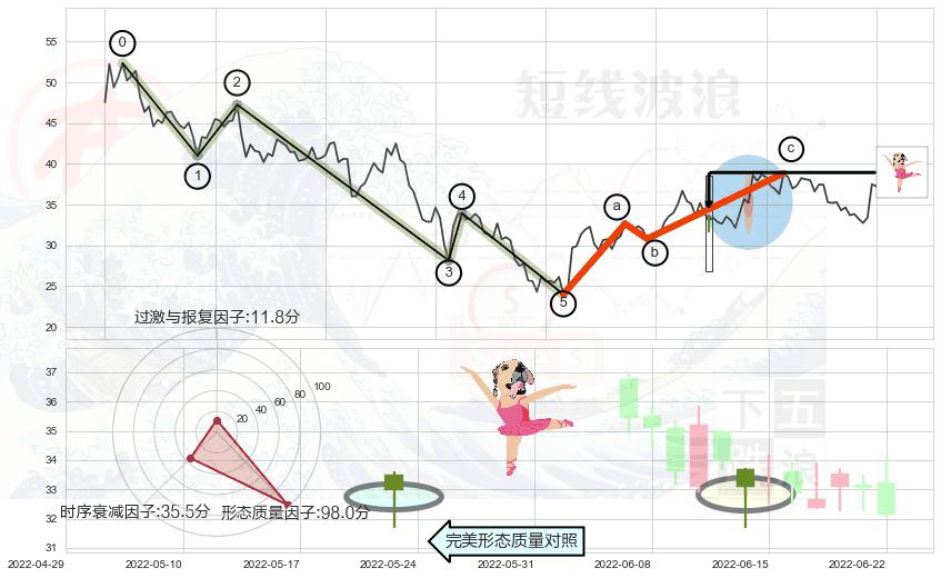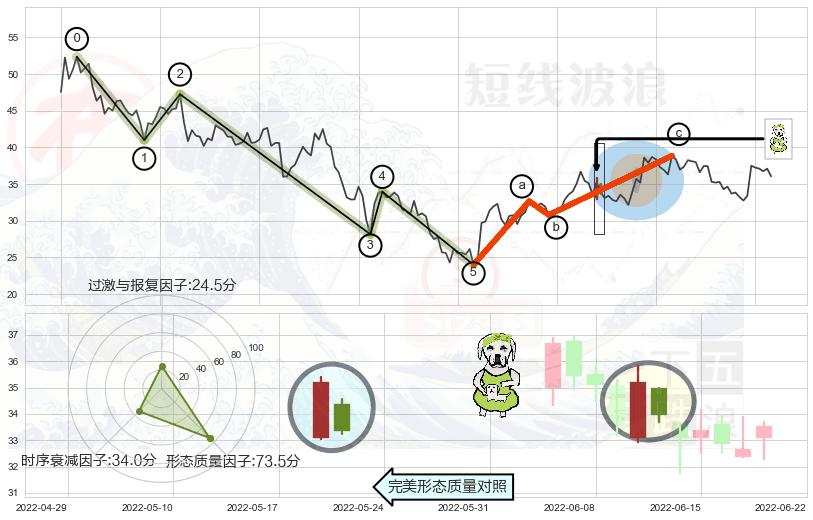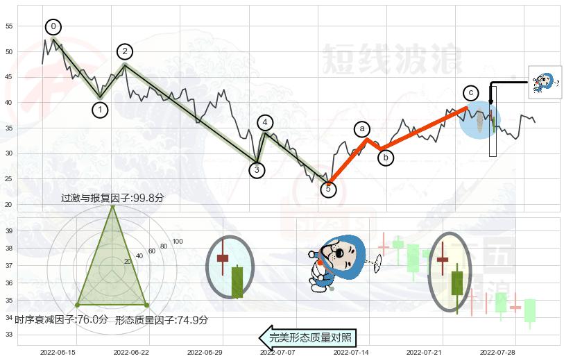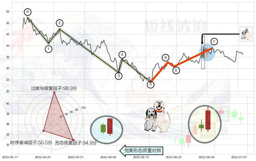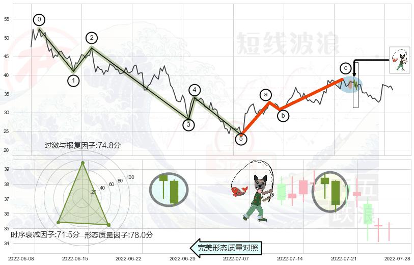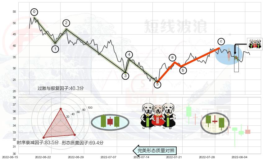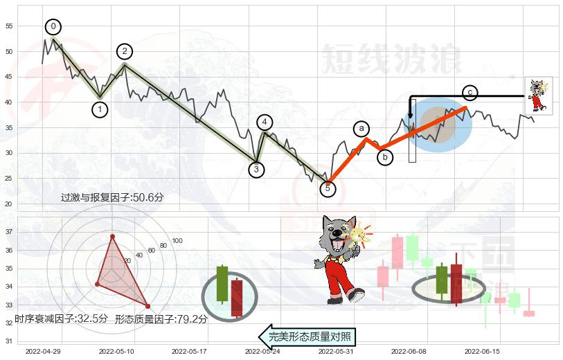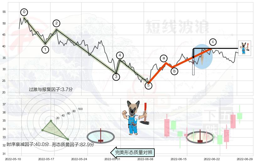 ➢ 下跌镊子线(n形磁铁) 🔜 波浪理论c点反弹终止反转下跌 综合量化分数:46.72 【中性】