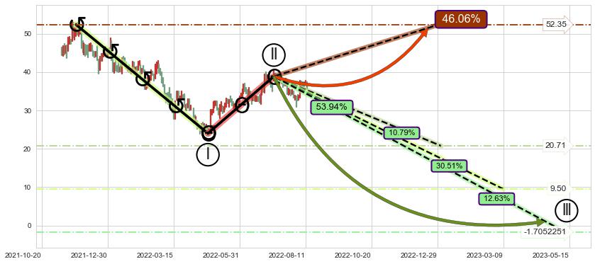 ➢ AI预测: 假定反转继续,第❸价格目标位置(2022-10-14, 52.35)