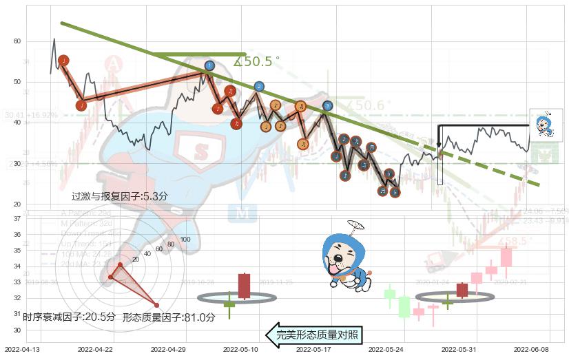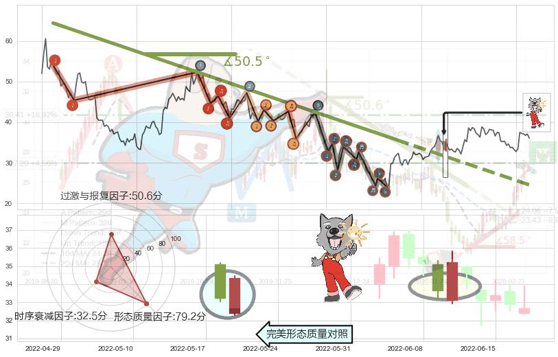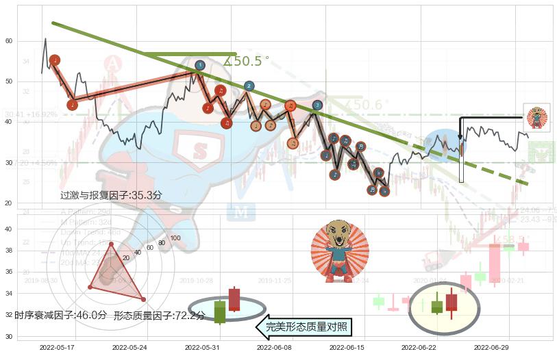 ♘ 阻力价格位43.33,可信任强度57.65%,距离最后交易2022-08-12形成的收盘价格36.05相差 +20.18%